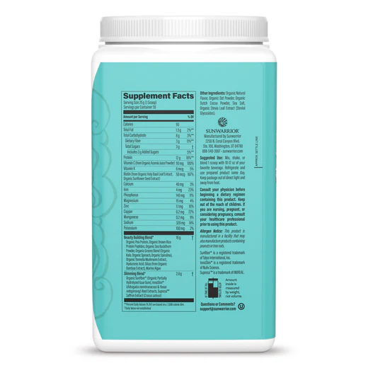 Other Ingredients: Organic Natural Flavor, Organic Dutch Cocoa Powder, Organic Oat Powder, Sea Salt, Organic Stevia Leaf Extract (Steviol Glycosides).